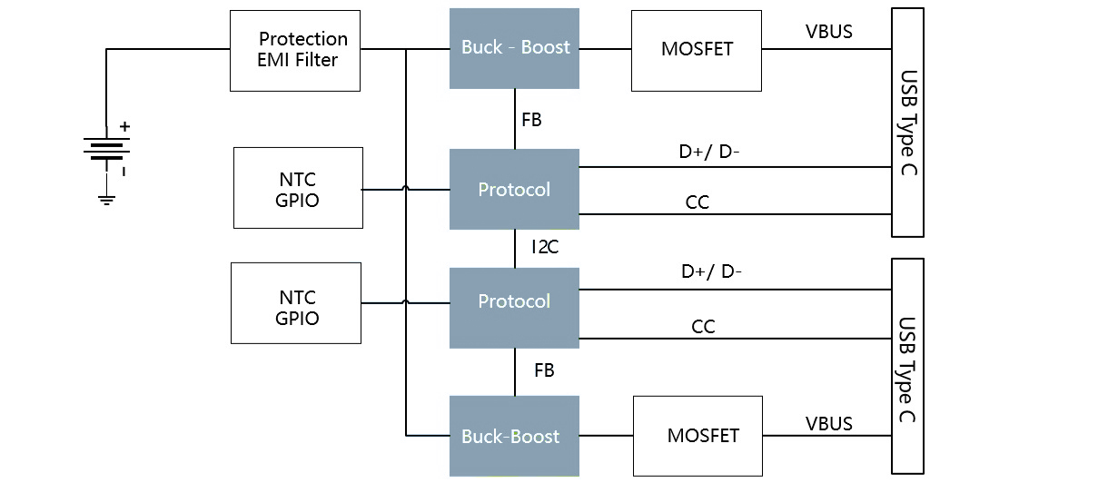 | NCPQ8849A | NCPQ8849A is a highly integrated fast charge protocol source controller that supports charging protocols. - PD3.1 with PPS & VCONN(TID:10018) - QC2.0/QC3.0 - UFCS - SCP A/B - AFC - Apple Mode - Other Private Protocol NCPQ8849A integrates constant-voltage loop (CV) and low side constant-current loop (CC) with programmable reference voltage to meet the PD specification. | Automotive > Auto Fast Charging Protocol |