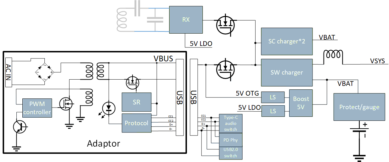 Wireless Charger TransmitterSource ControllersE-markerWireless Charger ReceiverSink and DRP